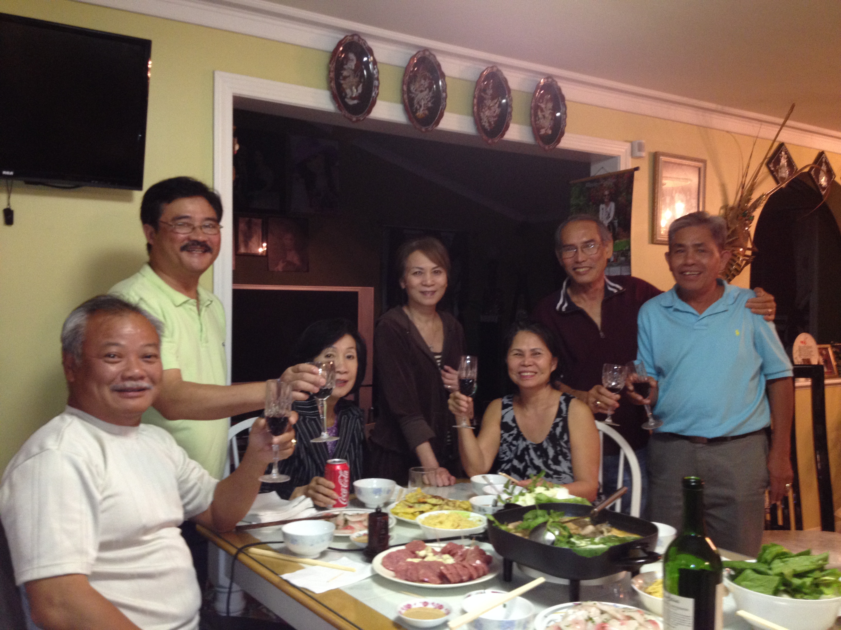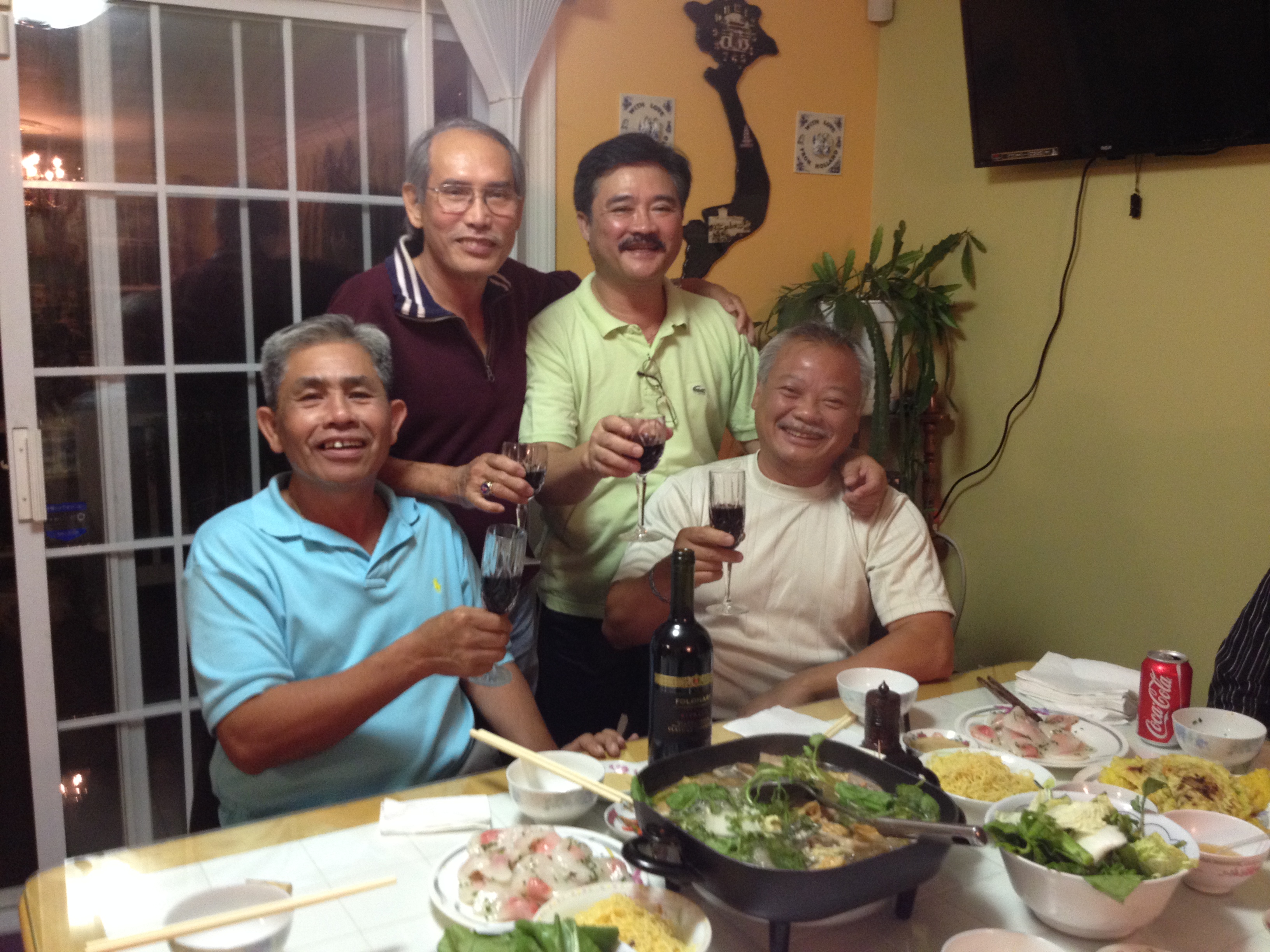 Nói chuyện huyên thuyên một lát , nhưng mình cũng không hỏi rõ ràng ngày giờ và Long đi cùng với ai … nhưng rồi một ngày cũng đến và tối hôm ấy Long đã đến nhà cùng với vài người bạn của Long . Mình mời vào nhà, xong đâu vào đó là ngồi vào bàn và dzô dzô dzô,,, chúng tôi ngồi ăn uống và  nói chuyện huyên thuyên cho đến gần 3 giờ sáng,  nhưng vì sáng sớm hôm ấy Tào Lao phải đến thiền đường để dự khoá  lên cấp nên phải chia tay đi ngủ để lo chuyện ngày mai…