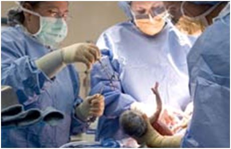 Đến 7 giờ sáng, một phòng chuyên khoa lớn đã chuẩn bị cho việc sinh mổ của Veronica. Các nữ điều dưỡng điều chỉnh nhiệt độ. Phòng có nhiệt độ mát nhưng cần được sưởi ấm cho thích hợp với việc bé chào đời. Chỉ một giờ sau, căn phòng đã qui tụ hàng chục điều dưỡng và bác sĩ. Hai ê kíp sẵn sàng, một chuẩn bị săn sóc khi bé chào đời, một chuẩn bị sinh Veronica bằng phẫu thuật. Với trang phục phòng mổ, Aaron, người chồng 38 tuổi, được đưa đến cạnh giường Veronica. BS Karrie Francios, chuyên viên cận sản khoa, đã tiến hành ca phẩu thuật cho Veronica. Trong nhiều giây, ê kíp Bác sĩ và các nữ hộ sinh đã làm việc cật lực và mang được bé ra ngòai đăt tại bàn đã được làm ấm. Như vậy là bé chào đời khi mới 30 tuần tuổi.