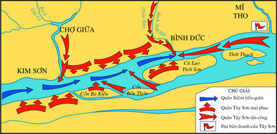 ́Vào khoảng cuối năm Giáp Thìn, tức đầu năm 1785, đại quân của Long Nhượng Tướng Quân Nguyễn Huệ vào đến miền nam và đóng đại bản doanh ở Mỹ Tho.