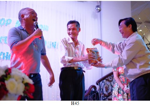 Cuộc hội ngộ thật đông, vui..ban tổ chức rất chu đáo…có MC, có dạ vũ, có bốc thăm trúng thưởng và qùa tặng qúy Thầy, Cô…Đề nghị năm tới quý quynh tổ chức hô lô tô nữa chắc sẽ dzui hơn…Chủ yếu là vui vẻ mà..?