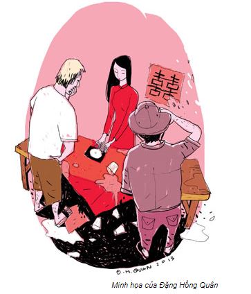 – Tao với ổng chia tay ai về nhà nấy rồi, đi ngang đám hỏi, không biết nghĩ sao tuôn vô phá tanh bành. Bà mẹ nó… bàn ghế ly chén nát như tương tàu. Đám hỏi của người ta bảy tám mâm lễ, ổng đập nát hết. Tao đâu dám vô can. Can, chắc bây giờ tao cũng có mặt ở xã quá. Ổng đấm vô mặt chú rể một phát, thằng kia bất ý bị xịt máu tùm lum. Quan viên hai họ bị một trận tháo chạy nháo nhào. Tay quay phim được lịnh của chủ nhà cứ thoải mái quay. Đảm bảo chuyến nầy Ba Cưng đền đừ luôn. Mụ nội nó, cái cảnh Ba Cưng bị tụt cái quần đùi lúc bị té mà chiếu lên màn hình chắc ba quân thiên hạ Tài Phú nầy có chuyện cười hết năm nay.