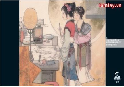 Thúy Kiều khảy đàn cho Kim Trọng, ngồi nghe đàn mà mặt mày cứ nhăn nhó vì có lòng dạ nào để mà thưởng thức đâu.