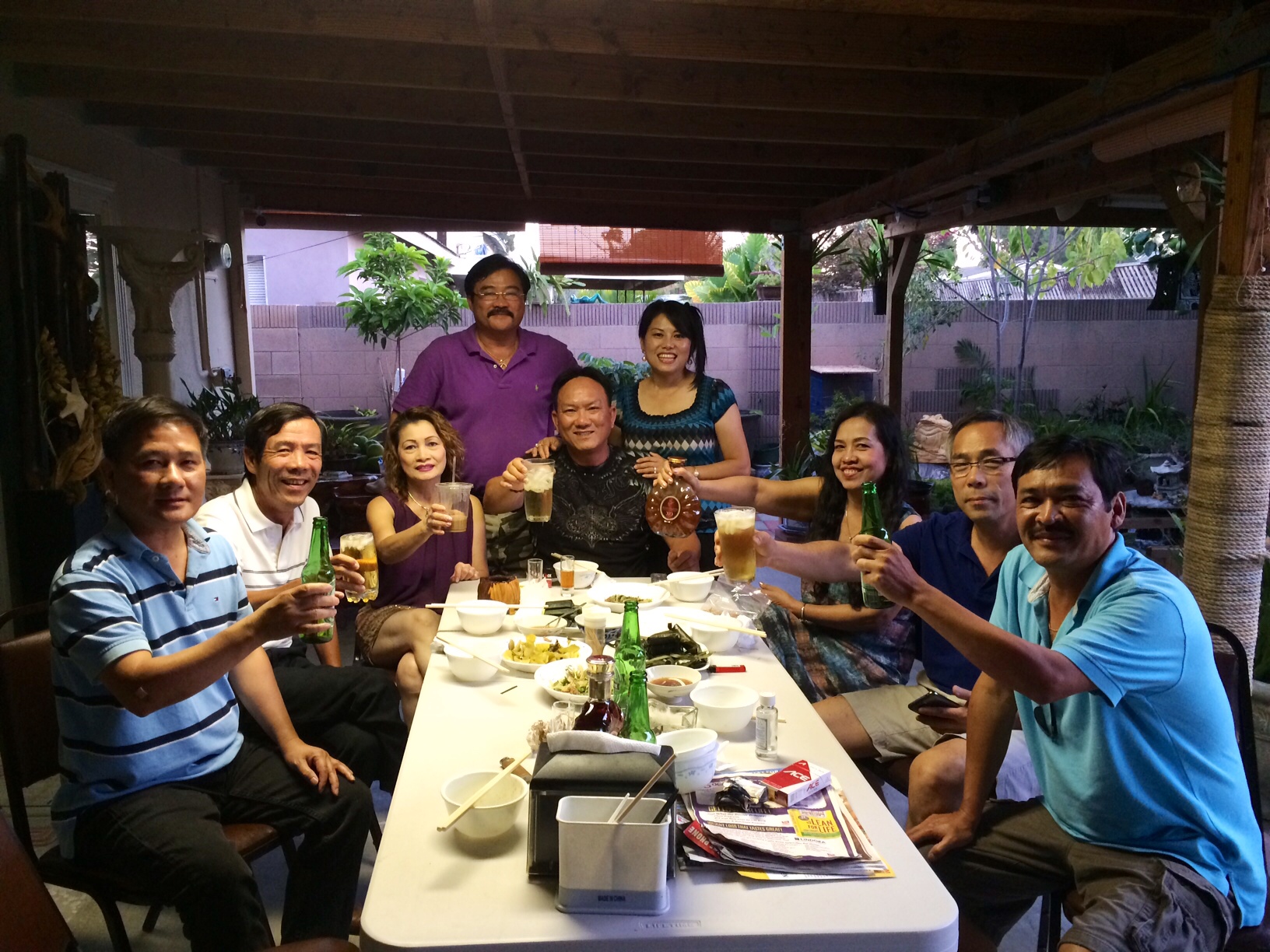 Đến trưa, Hoàng-Phong mời tất cả ace bạn bè về nhà HP nhậu tiếp đến tối. Không khí thật là thân tình, vui nhộn.