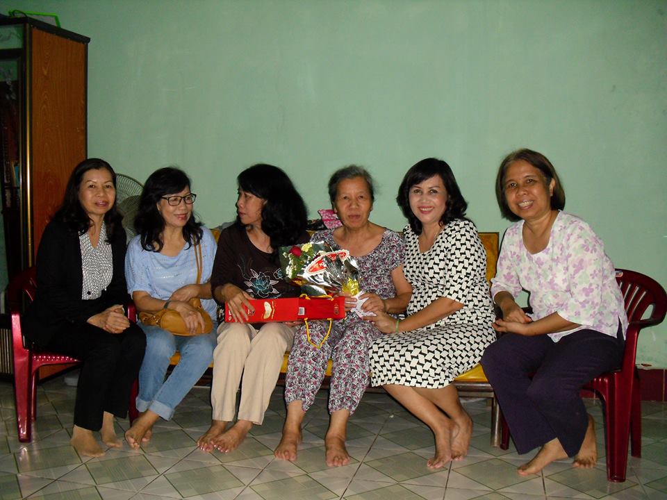 Họp mặt chuẩn bị đi thăm thầy cô…Từ trái qua: Hòa, Tuyến, Lý Hương, Liên Trinh, Ngô Anh, Mộng Vân, Lâm Cẩm Ái, Đoàn Kim Thanh, Minh Châu và Trịnh Minh Xuân.