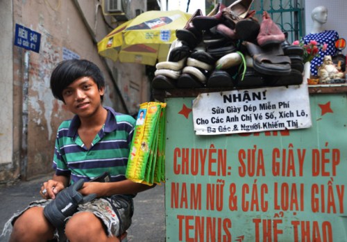 Quầy sửa giày miễn phí của một người không dư giả gì thể hiện tấm lòng phóng khoáng của người Sài Gòn.