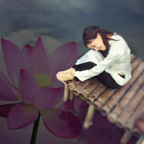 Bóng nhân ngư ôm mặt khóc trên gềnh